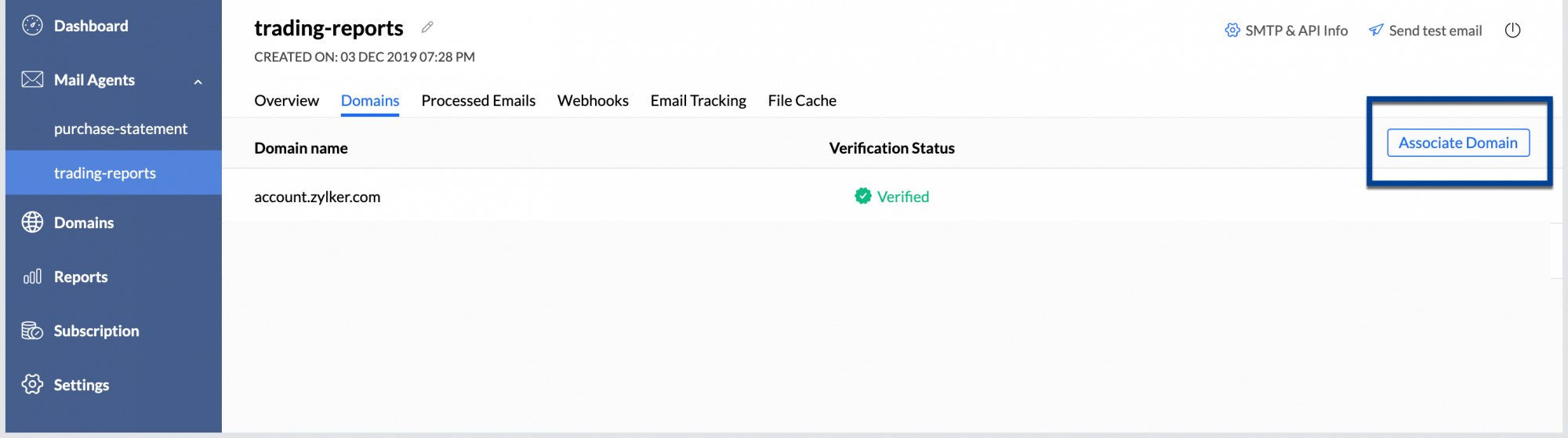 在本部分中,您将了解如何将域与邮件代理关联。我们已经在此处了解了什么是邮件代理以及如何创建邮件代理。下一步是通过将域与邮件代理关联,对电子邮件进行分组。