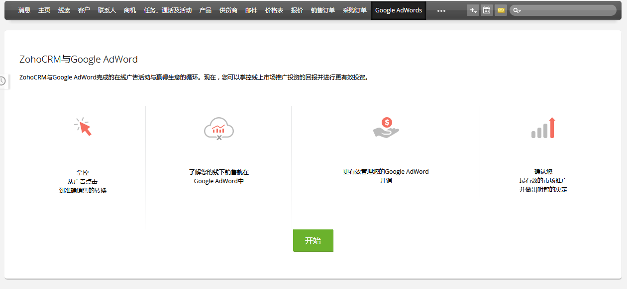 Zoho CRM与Google Adwords集成,在CRM中就能掌握Google广告投放情况。