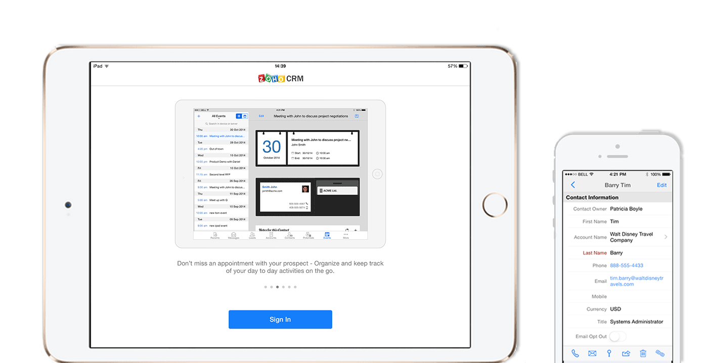 Zoho CRM可以再手机上直接打开,也能下载App使用。即使不在公司,也能安排工作、管理客户。