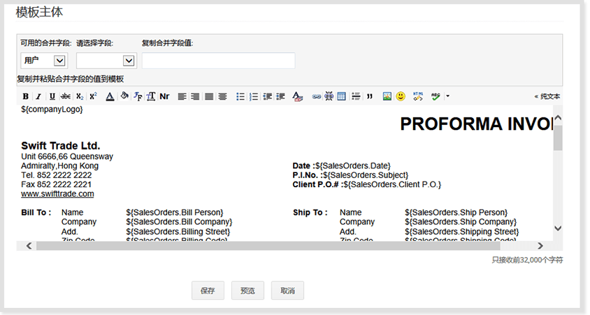 Zoho CRM提供了报价单、订单和PI的模板编辑功能,你可以制作任何想要的样式,并一键发送给CRM中的联系人。