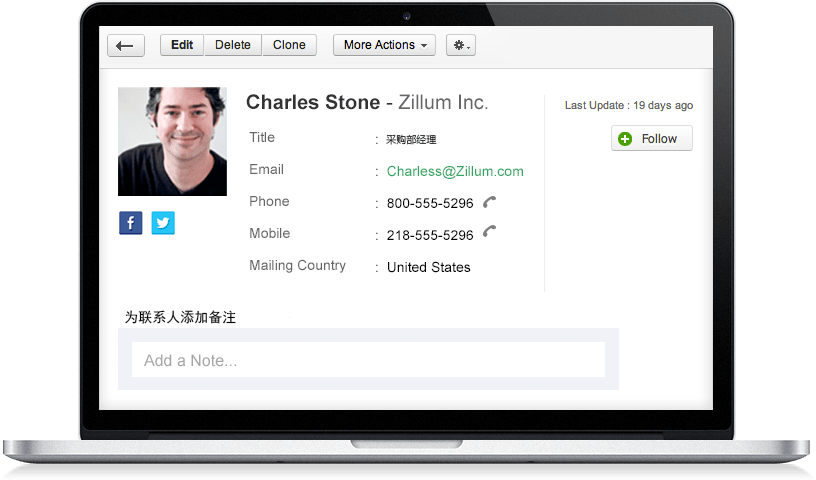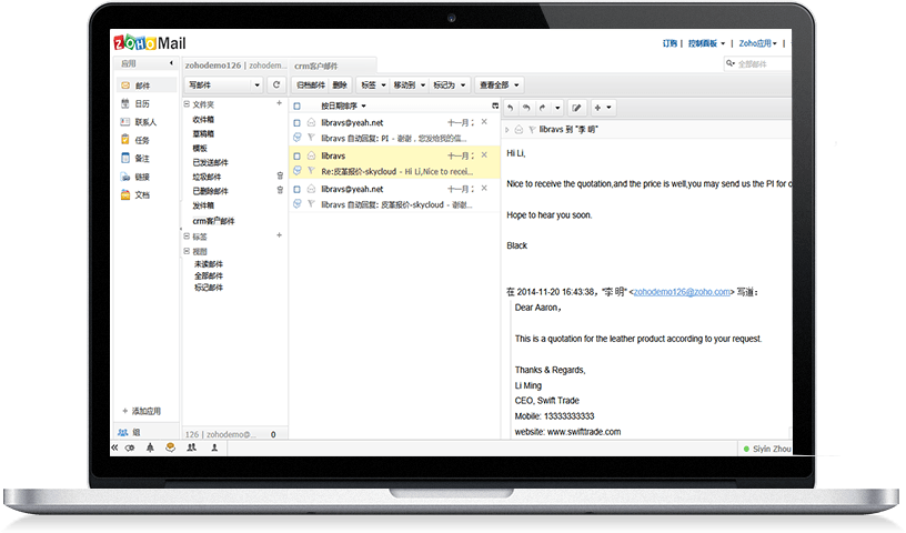 询盘、客户信息、来往邮件、报价记录、历史交易、单据,在Zoho CRM中实现统一有序的管理,同时支持手机登录,随时随地管客户。