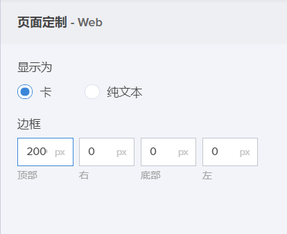 显示为 描述 卡片 生成一个视图,页面的每个元素(例如,面板、表单、报表、图表、代码段或按钮)显示为单独的卡片。 纯文本 将元素平放,使用边框隔离。 - 设置各条边的边距。提供边距是可选项。您可为一条或多条边设置边距。