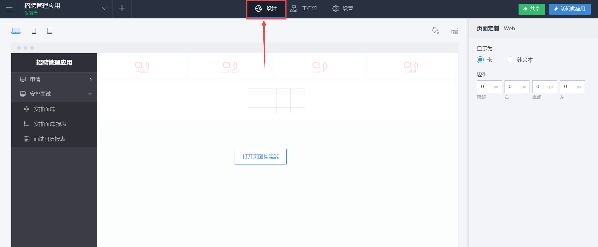 - 转至应用程序的设计页面。