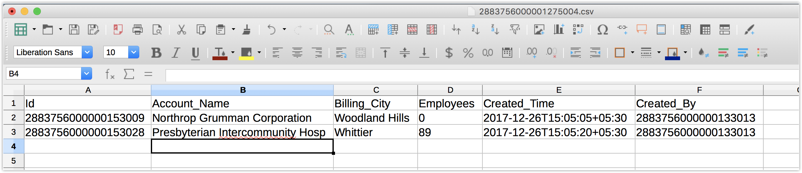 上面的图像显示了一个包含导出记录的示例CSV文件。