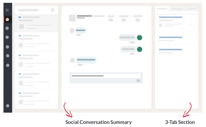 The last section on the right is a 3-tab section that includes CRM as we all social conversation details.