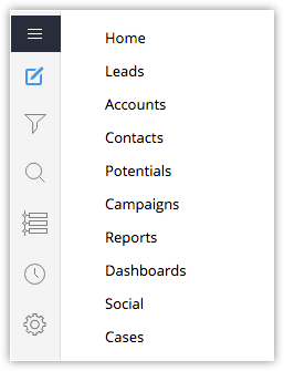 The first section on the left is the CRM category section. The CRM view which the selected post belongs to is presented here. For example, Customers.