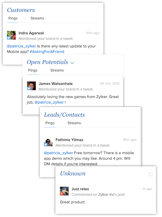 Under Customers, Open Potentials and Leads/Contacts, the social media posts are further classified under two categories for better clarity.
