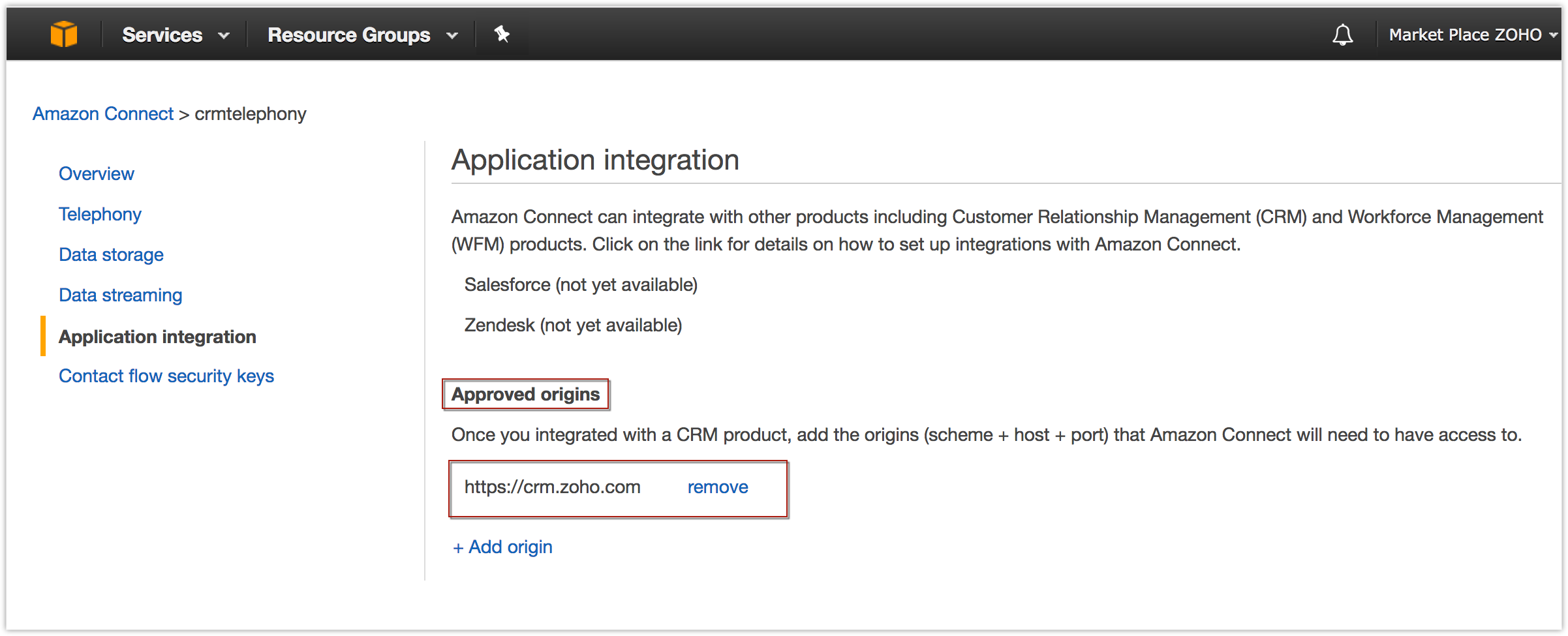 - 禁用 Amazon Connect 集成后,您将不能在 Zoho CRM 中通过 Amazon Connect 进行通话。