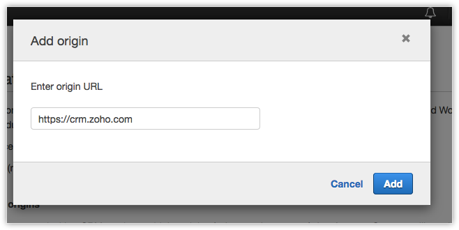 - 输入起源 URL 为'https://crm.zoho.com'。