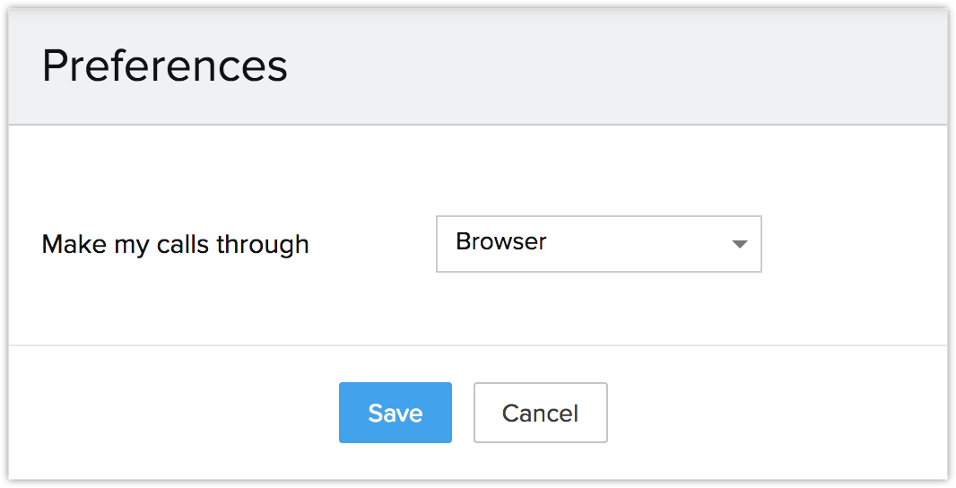 默认情况下,通话偏好弹出窗口中您的通话偏好将选择为浏览器,这样您可以通过您的浏览器进行通话。