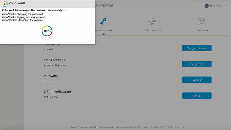 )。 - 此时会打开一个新页签,Zoho Vault 让您登录进去,重置您的密码,且更改会应用到 Zoho Vault 的机密列表和相应的 Web 账户。