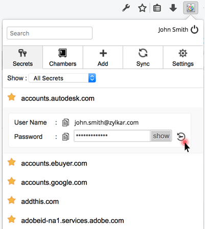 您也可以不登陆到 Zoho Vault 的 GUI,而从浏览器扩展直接更改您的密码。更改会自动与 Zoho Vault 同步。